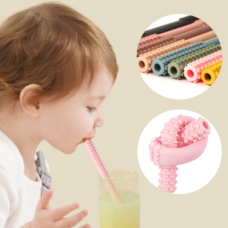1PCS Baby Toy Silicone Molar Straw Baby Teether With Brush Baby Teething Toys Molar Silicone Handle Chewing Toy
